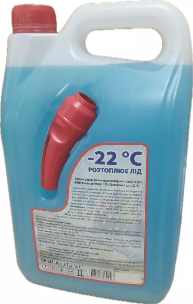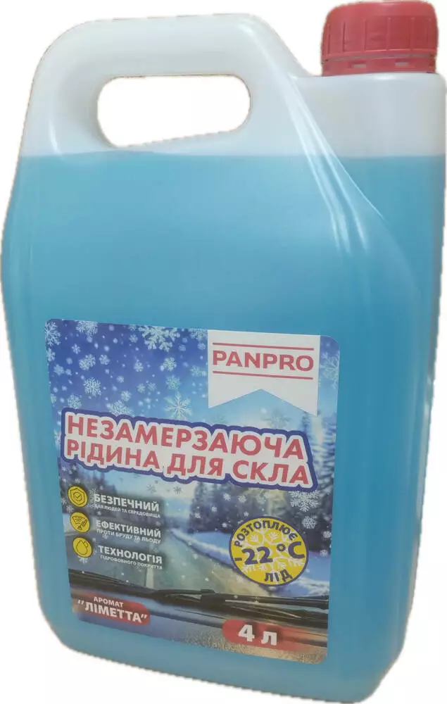 Зимова рідина для очищення скла та фар. Ефективний до t-200С. Розтоплює лід.